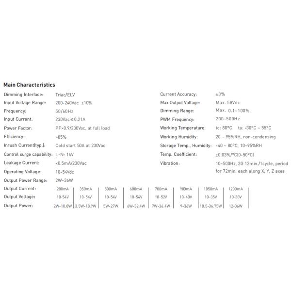 Dimmable Led Driver 200-240V input,200mA - 1200mA 36W CC LED Triac Driver